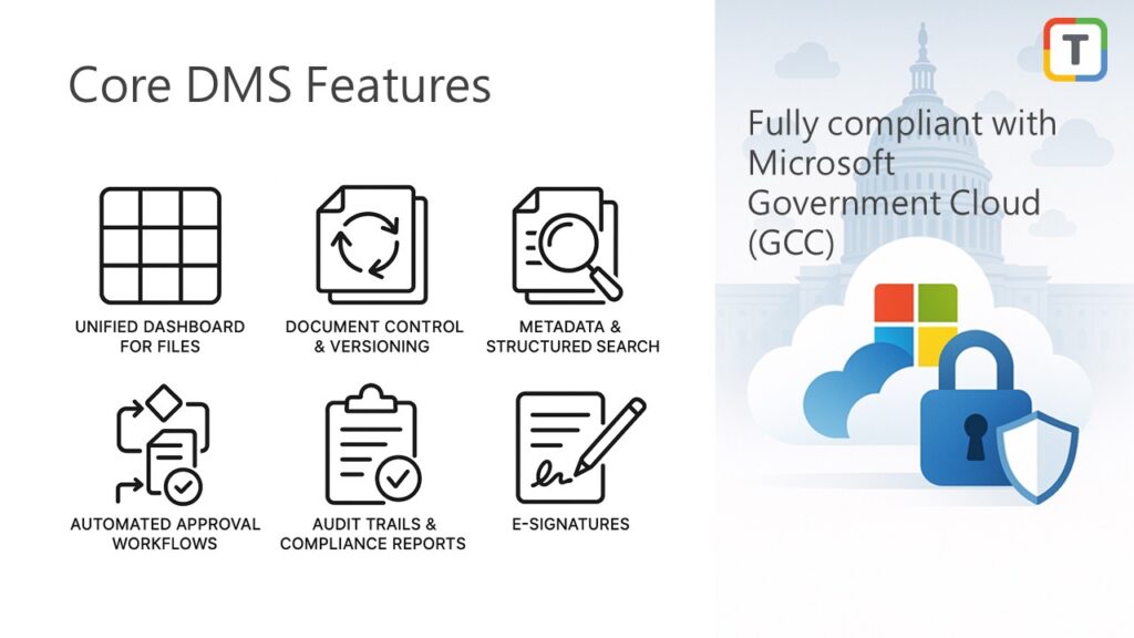 Titan Workspace removes complexities of SharePoint DMS with ease of document filing, metadata driven structure, versioning, approvals, e-signatures, scanning and automated workflows. This makes adoption easier for employees while reducing IT maintenance costs. The result is a business-ready DMS that is audit-friendly, secure, and aligned with ISO and HIPAA standards.